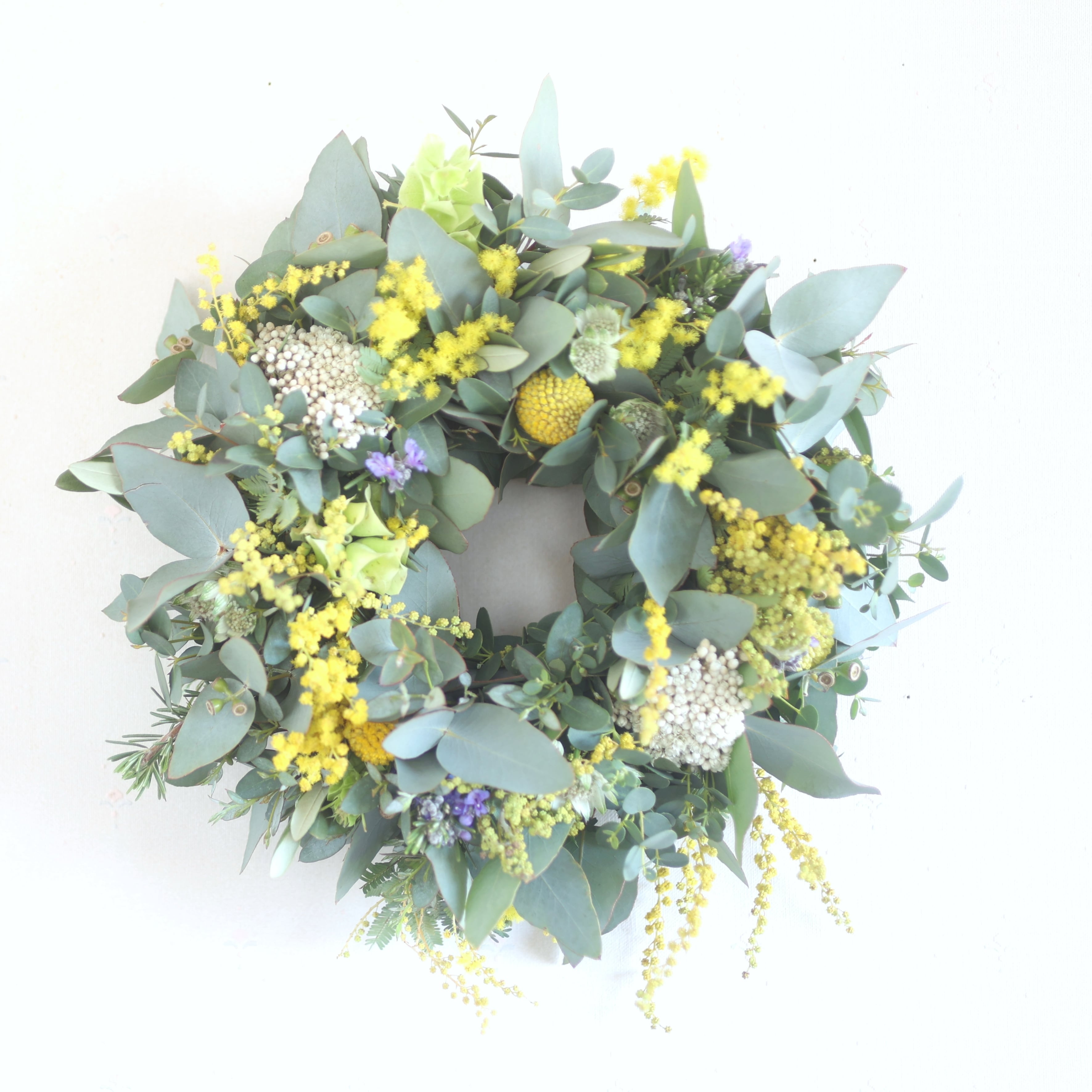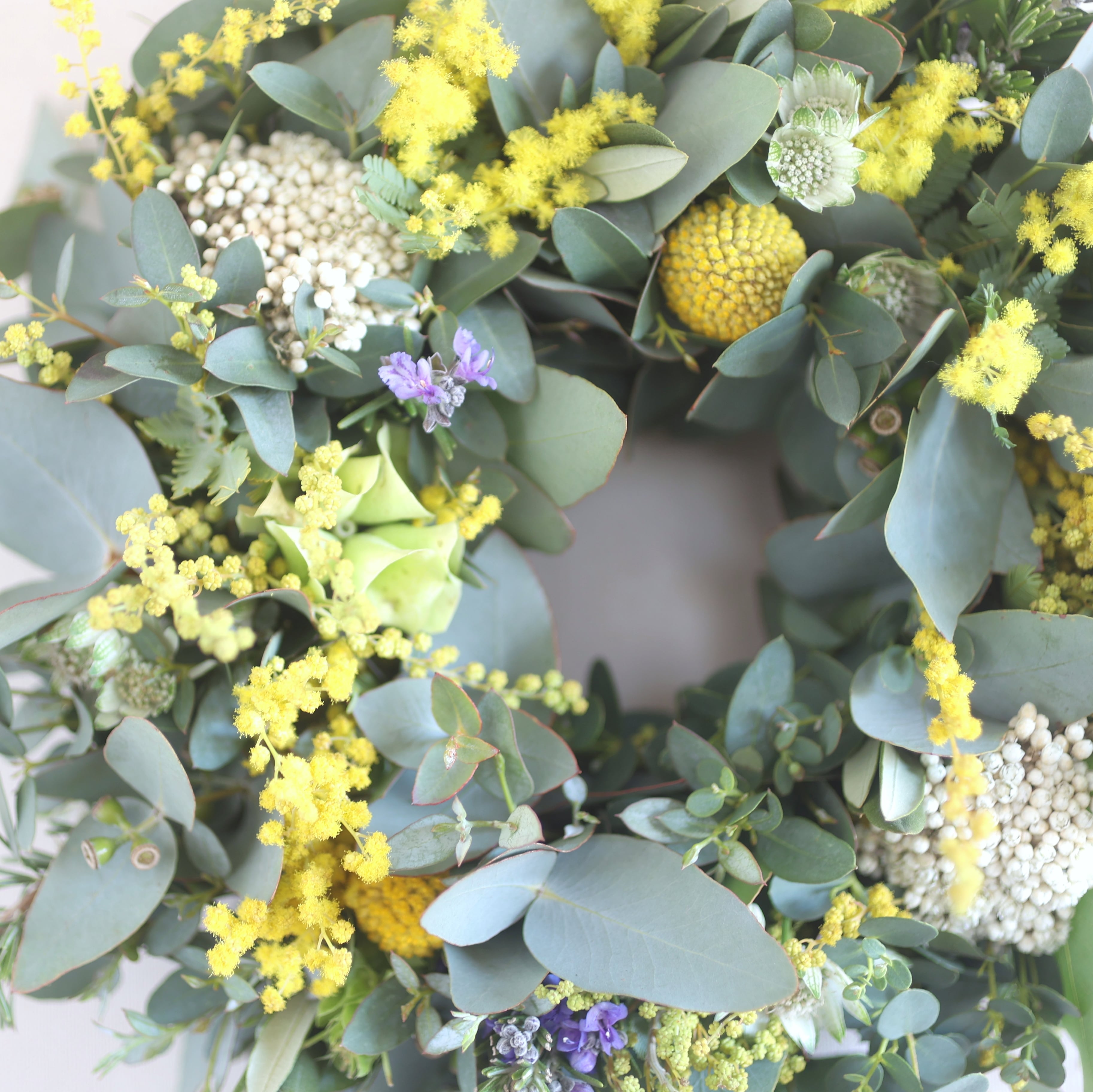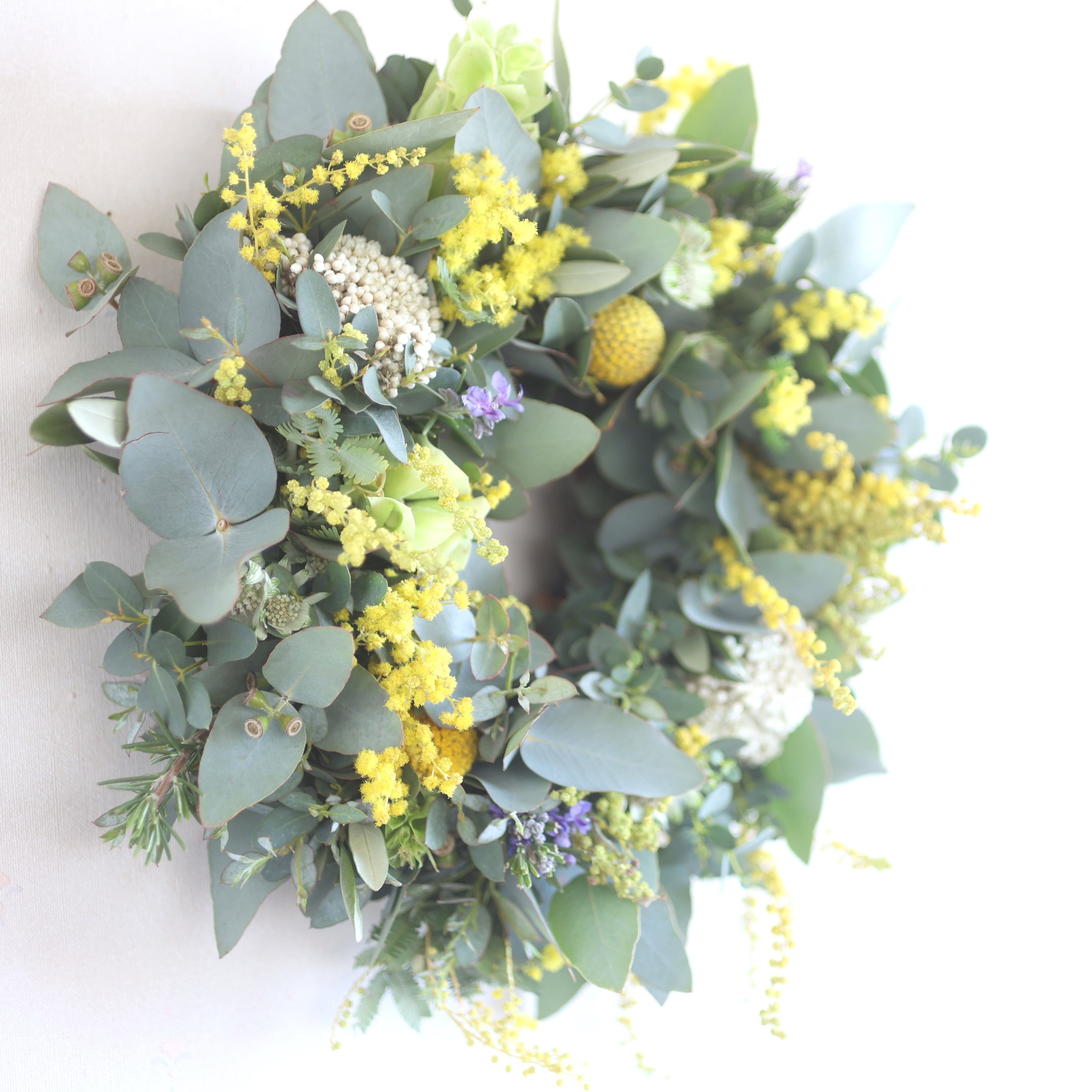 心地よい春に想いを馳せながら、おうちにミモザのリースを飾りませんか。