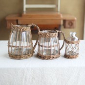 ナチュラルに、蔓を巻き付けたような雰囲気のガラスベース。