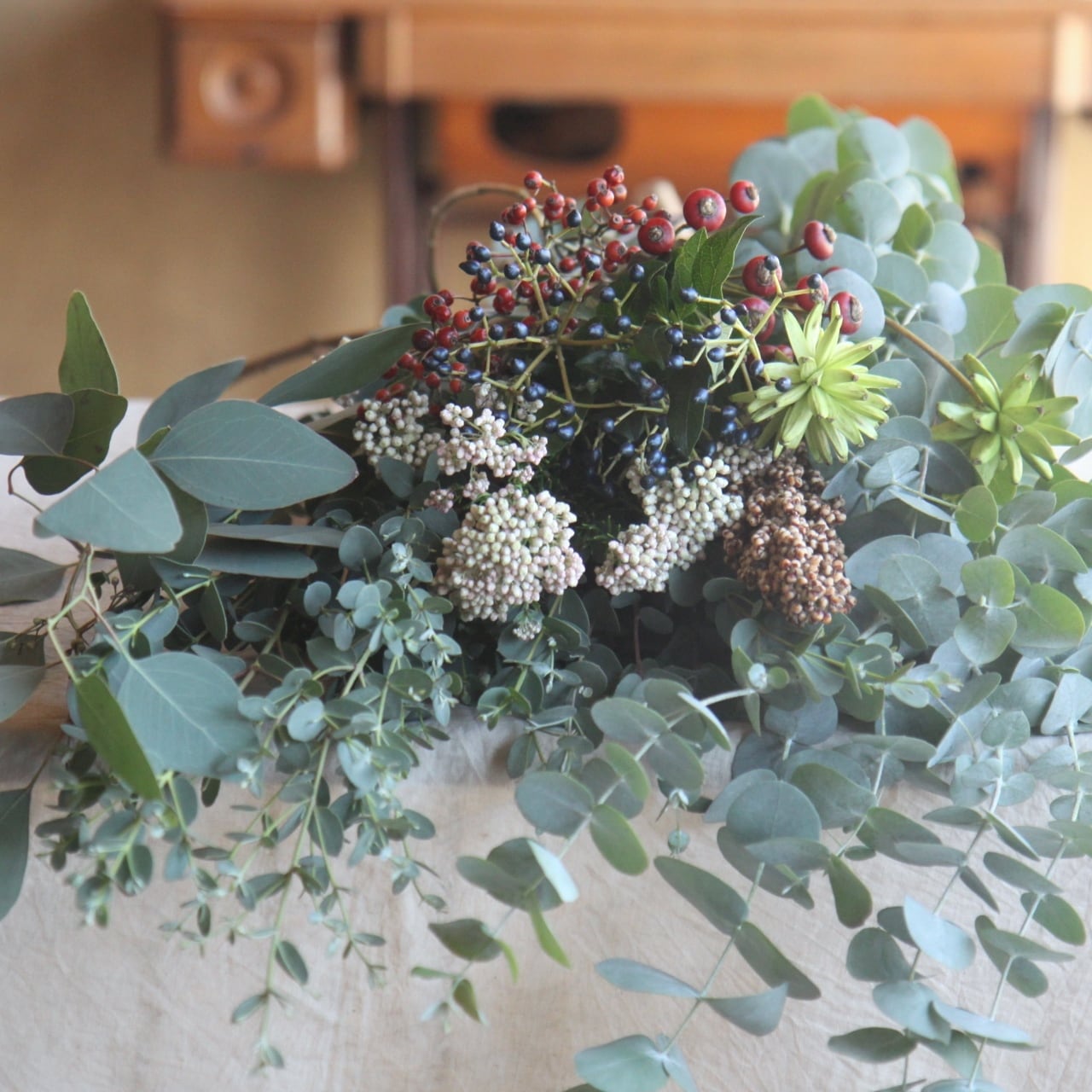 le petit bonheur セレクトの、季節の植物をお届けするリースづくりセットです。
