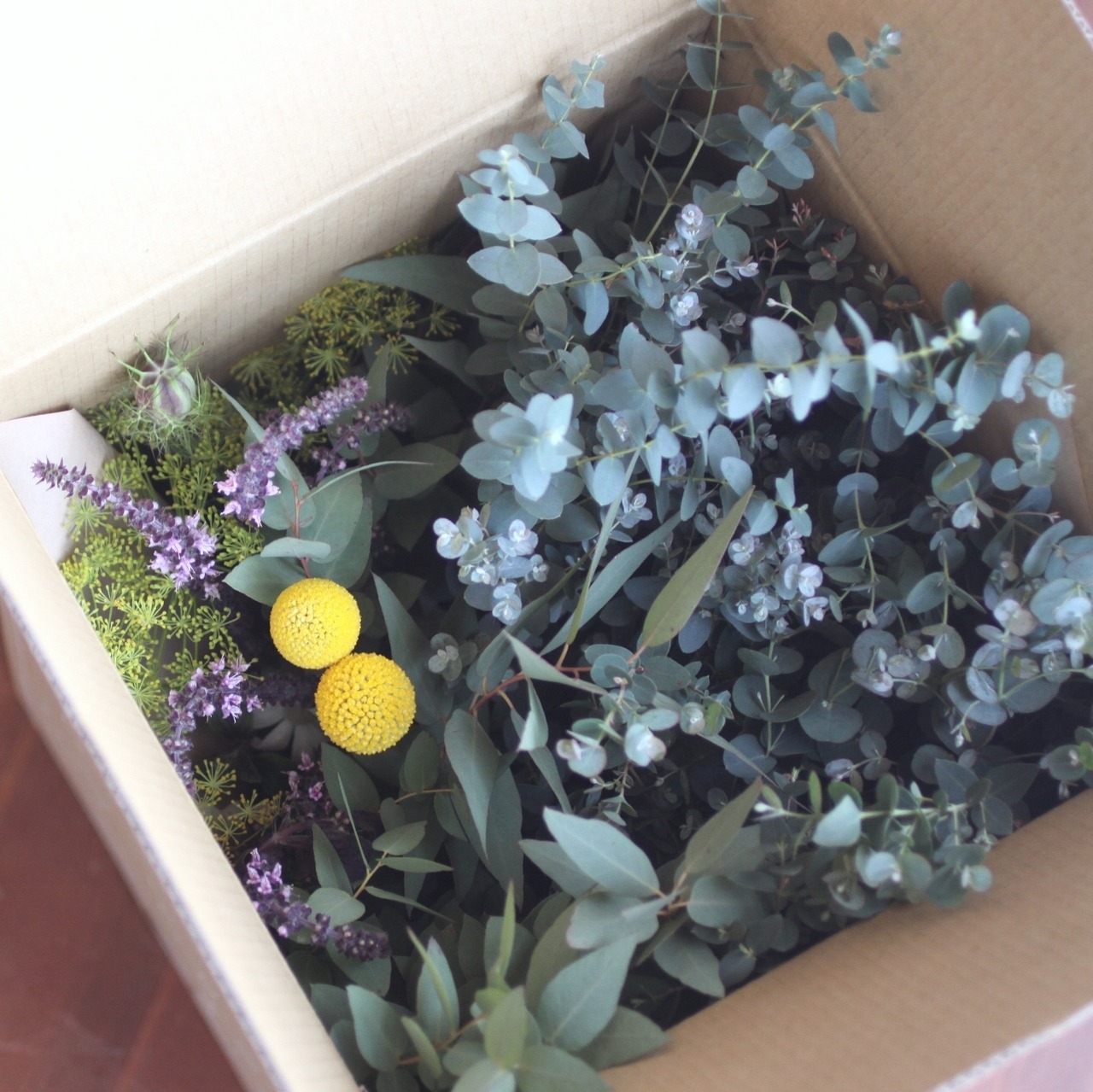 le petit bonheur セレクトの、季節の植物をお届けするスワッグづくりセットです。