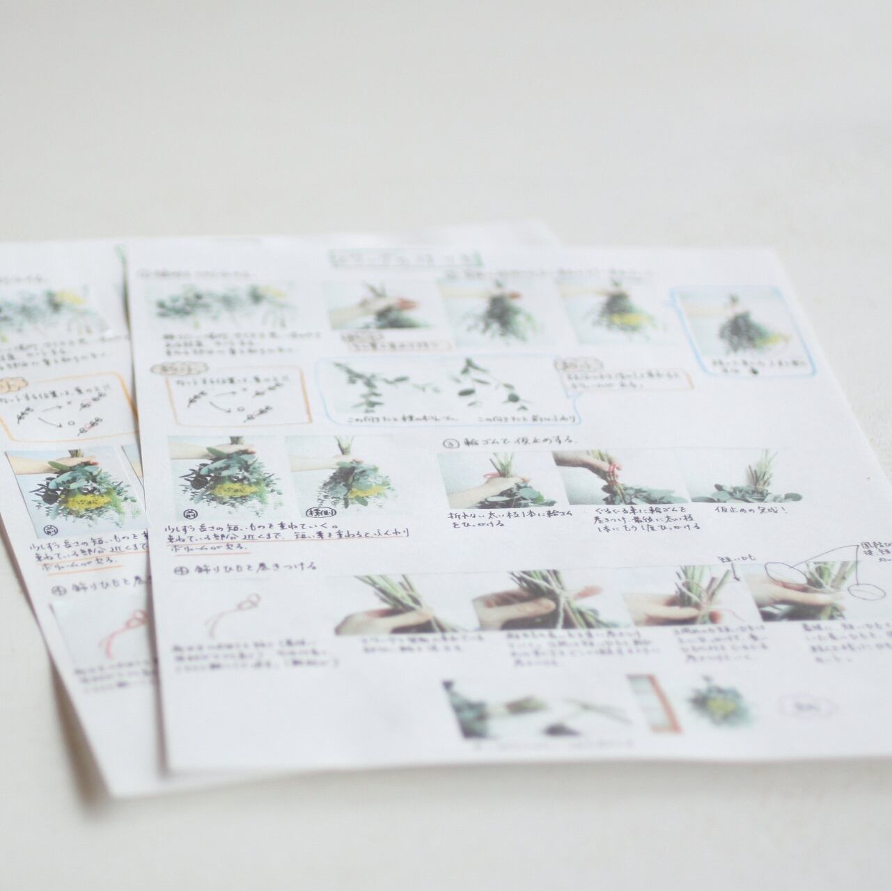 ・作り方のポイント(植物の種類、要所要所のコツを写真と共に記載した紙)